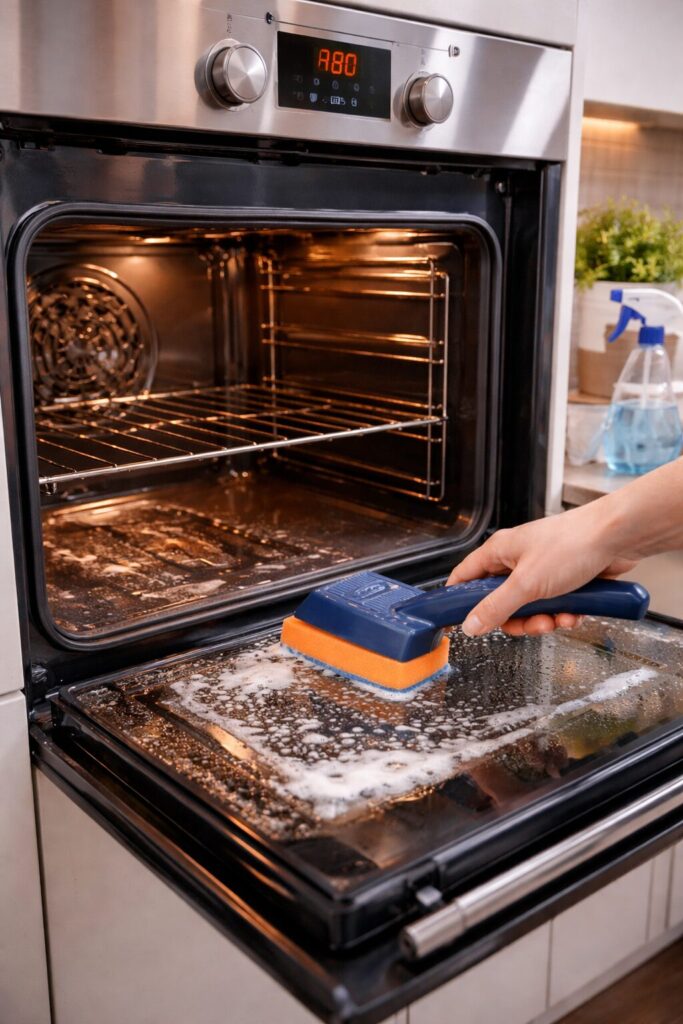 Der enthaltene kratzfreie Glas- und Geschirrschwamm sorgt dabei für gründliche Reinigung – sanft zu empfindlichen Oberflächen, aber stark gegen Schmutz.